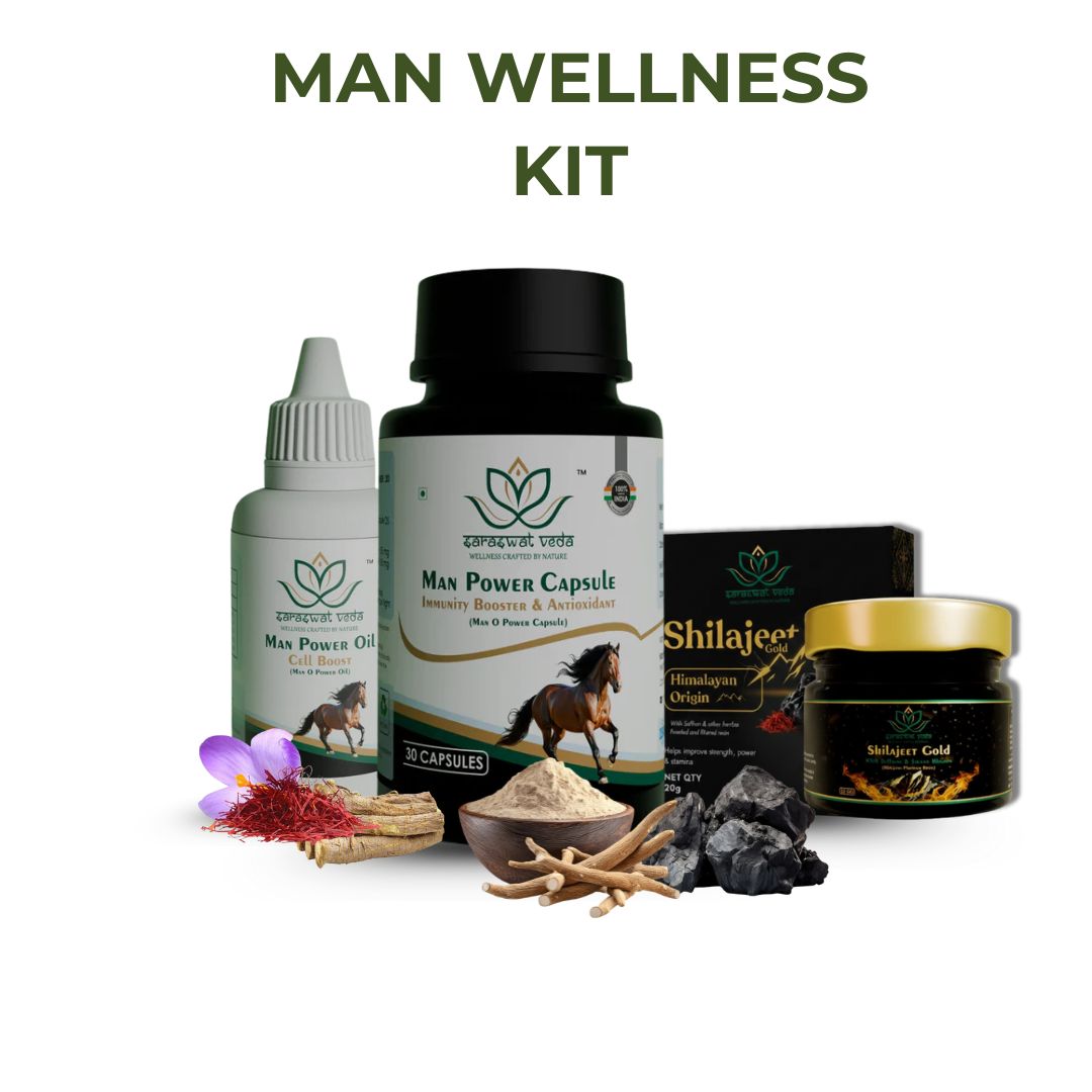 A complete Ayurvedic wellness kit designed to support male strength, stamina, energy, and vitality through natural formulations that promote confidence, endurance, and long-term performance.